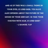 And as if this was a small thing in Your eyes, O Lord GOD, You have also spoken about the future of the house of Your servant. Is this Your custom with man, O Lord GOD?