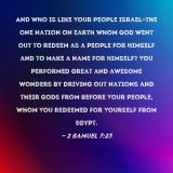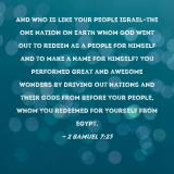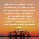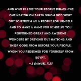 Pictures and Artwork And who is like Your people Israel--the one nation on earth whom God went out to redeem as a people for Himself and to make a name for Himself? You performed great and awesome wonders by driving out nations and their gods from before Your people, whom You redeemed for Yourself from Egypt. |
