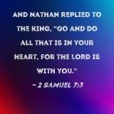 And Nathan replied to the king, "Go and do all that is in your heart, for the LORD is with you."