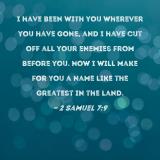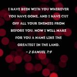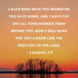I have been with you wherever you have gone, and I have cut off all your enemies from before you. Now I will make for you a name like the greatest in the land.