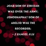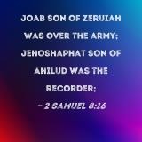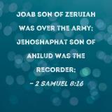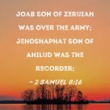 Joab son of Zeruiah was over the army; Jehoshaphat son of Ahilud was the recorder;