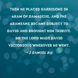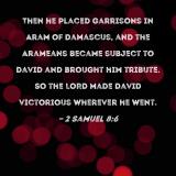 Then he placed garrisons in Aram of Damascus, and the Arameans became subject to David and brought him tribute. So the LORD made David victorious wherever he went.