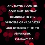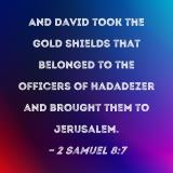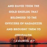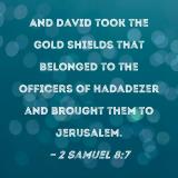 And David took the gold shields that belonged to the officers of Hadadezer and brought them to Jerusalem.