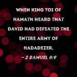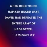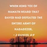 When King Toi of Hamath heard that David had defeated the entire army of Hadadezer,