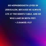 So Mephibosheth lived in Jerusalem, because he always ate at the king's table, and he was lame in both feet.