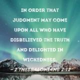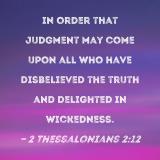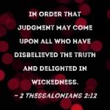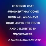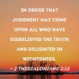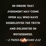 in order that judgment may come upon all who have disbelieved the truth and delighted in wickedness.