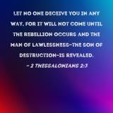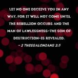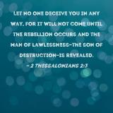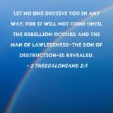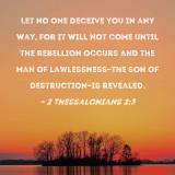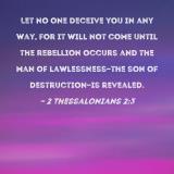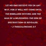 Let no one deceive you in any way, for it will not come until the rebellion occurs and the man of lawlessness--the son of destruction--is revealed.