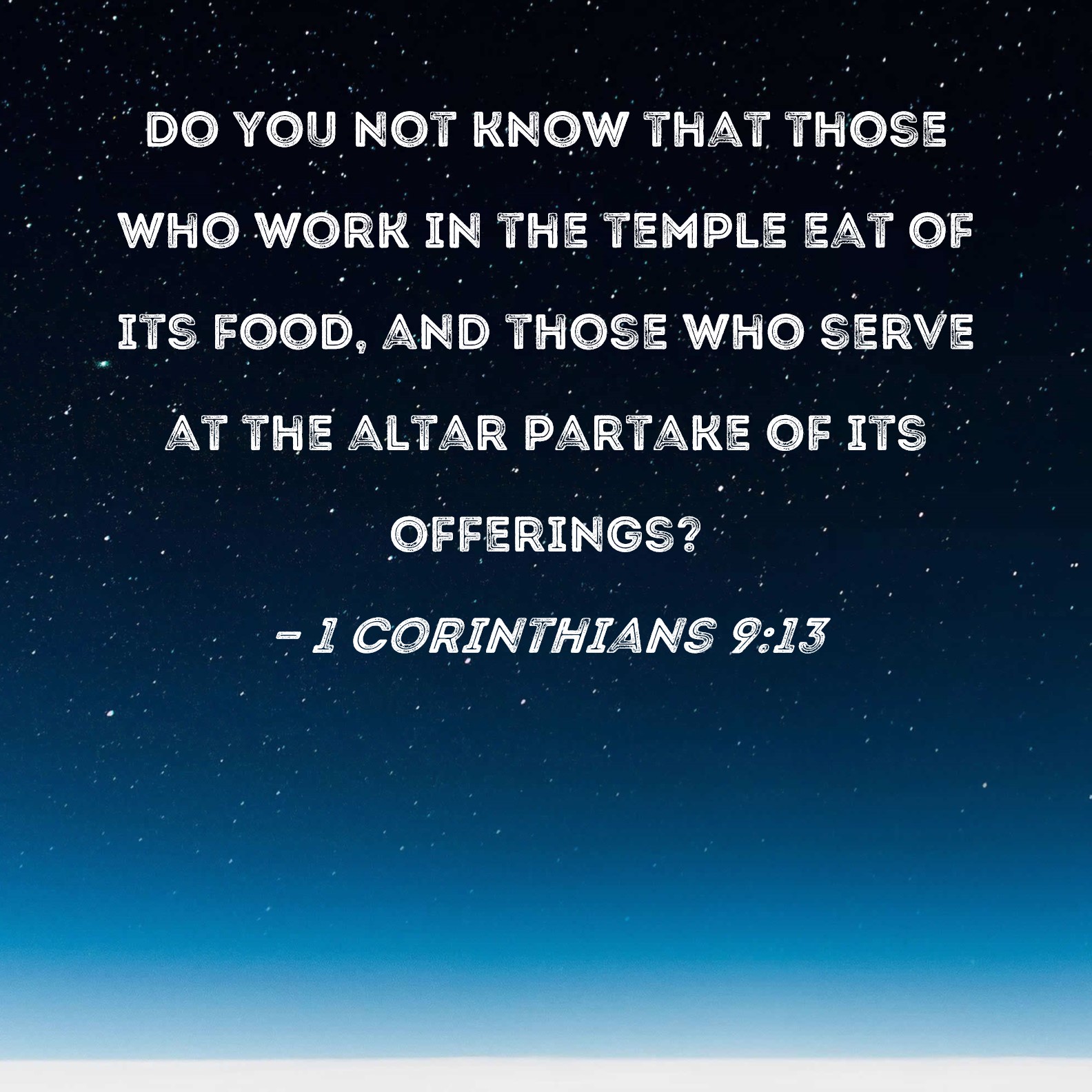 1 Corinthians 9:13 Do you not know that those who work in the temple eat of its food, and those who serve at the altar partake of its offerings?