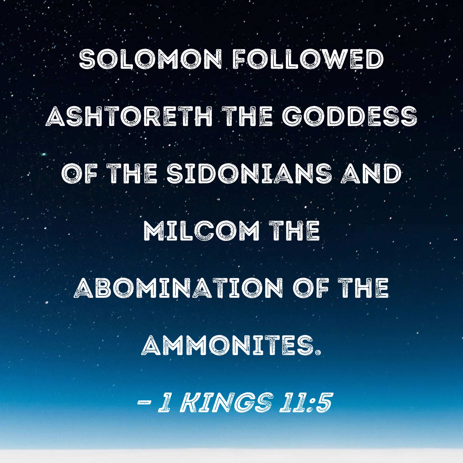 1 Kings 11:5 Solomon followed Ashtoreth the goddess of the Sidonians and Milcom the abomination of the Ammonites.