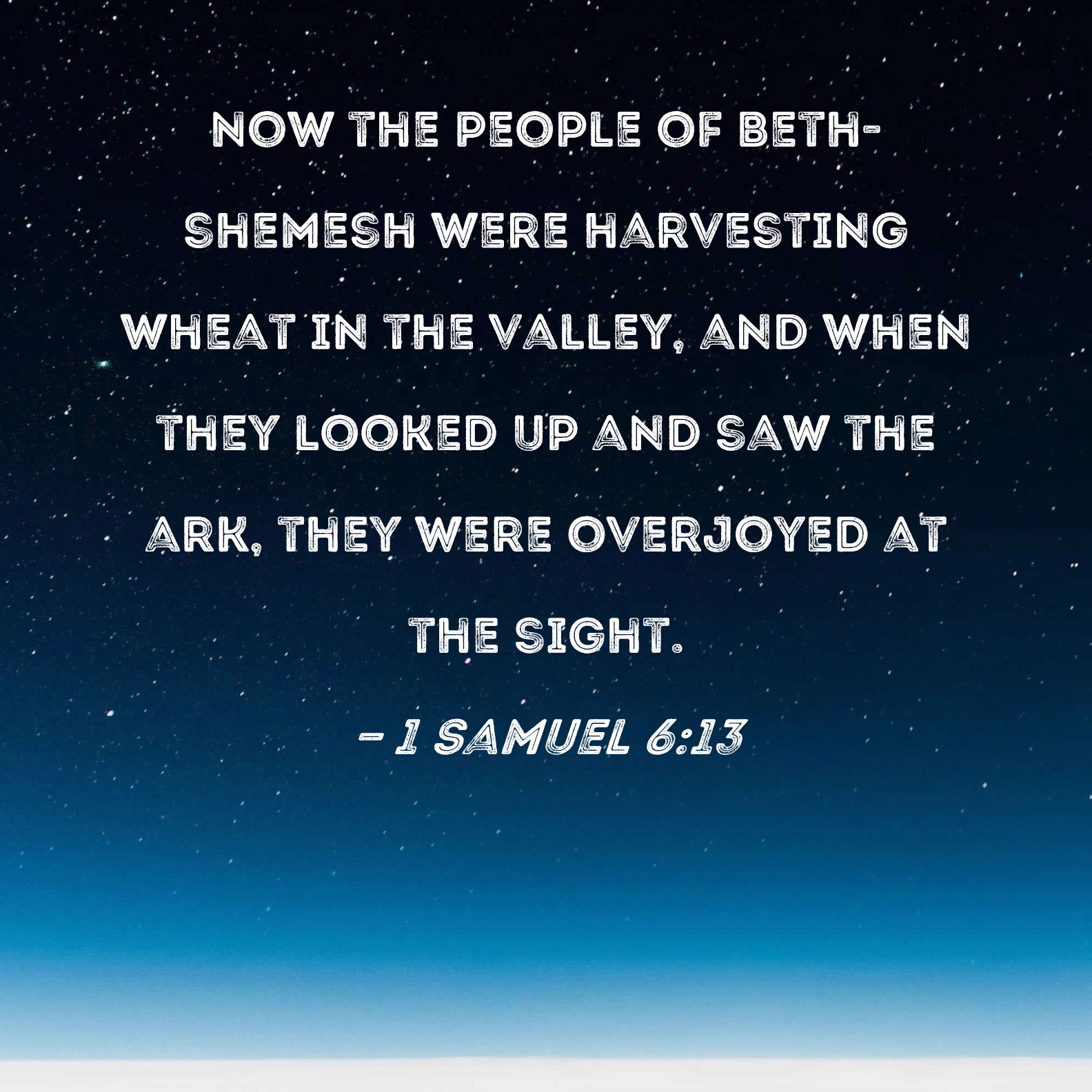1 Samuel 6:13 Now the people of Beth-shemesh were harvesting wheat in the valley, and when they looked up and saw the ark, they were overjoyed at the sight.
