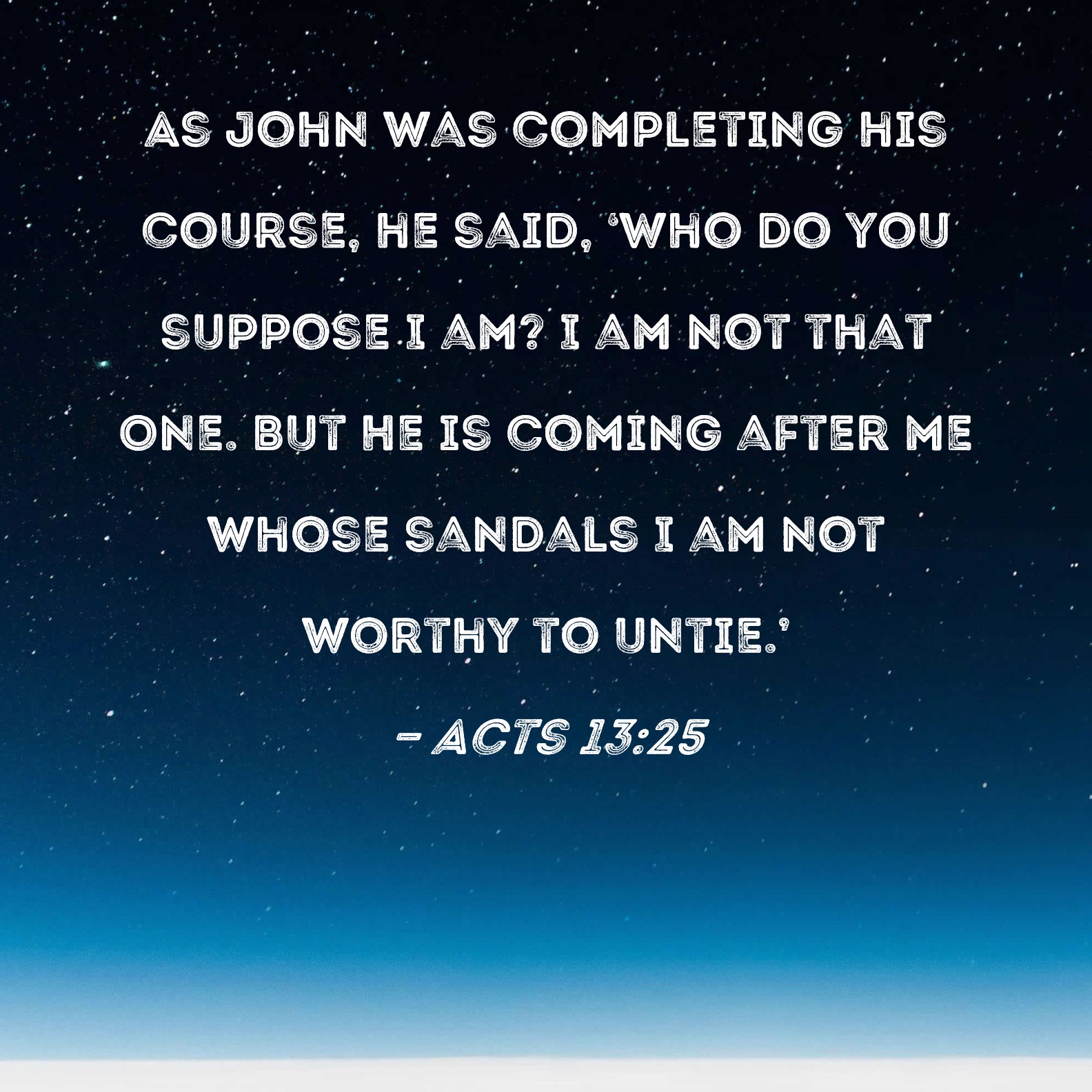 Acts 13:25 As John was completing his course, he said, 'Who do you suppose I am? I am not that One. But He is coming after me whose sandals I am not worthy to untie.'