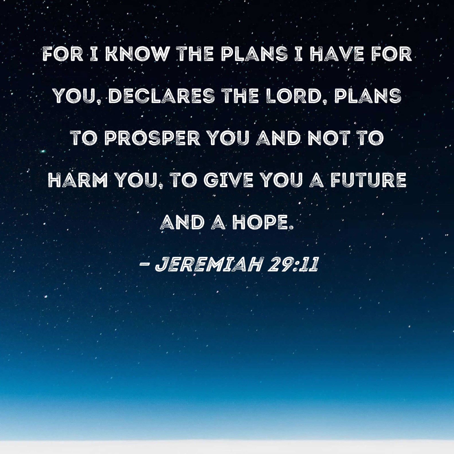 Jeremiah 29:11 For I know the plans I have for you, declares the LORD, plans to prosper you and not to harm you, to give you a future and a hope.