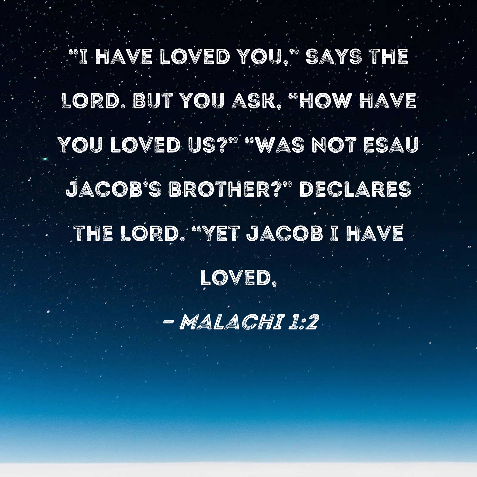 Malachi 1:2 "I have loved you," says the LORD. But you ask, "How have You loved us?" "Was not Esau Jacob's brother?" declares the LORD. "Yet Jacob I have loved,
