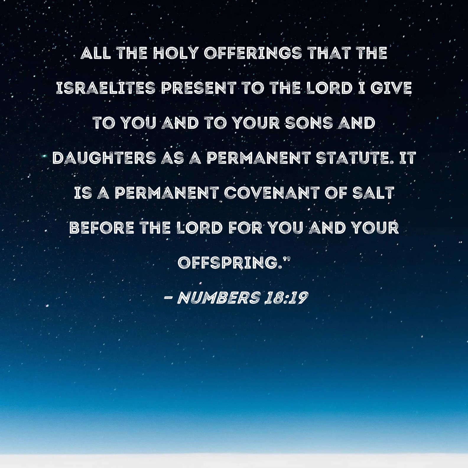 Numbers 18:19 All the holy offerings that the Israelites present to the LORD I give to you and to your sons and daughters as a permanent statute. It is a permanent covenant of salt before the LORD for you and your offspring."