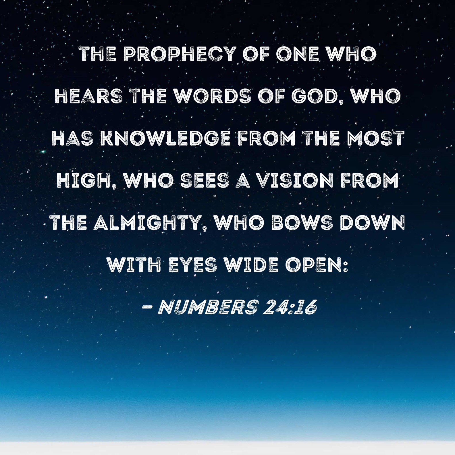 Numbers 24:16 the prophecy of one who hears the words of God, who has knowledge from the Most High, who sees a vision from the Almighty, who bows down with eyes wide open: