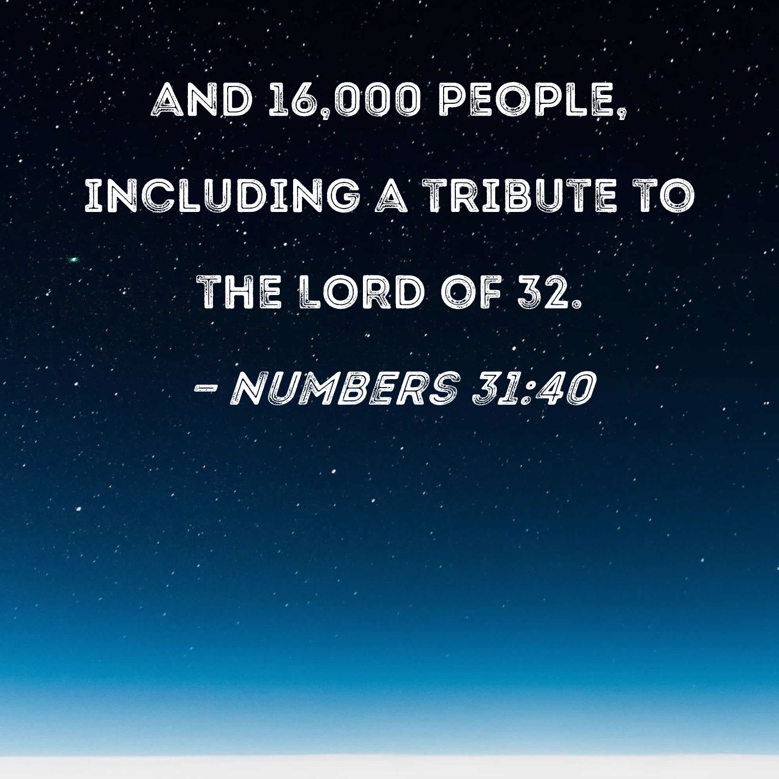 Numbers 31:40 and 16,000 people, including a tribute to the LORD of 32.