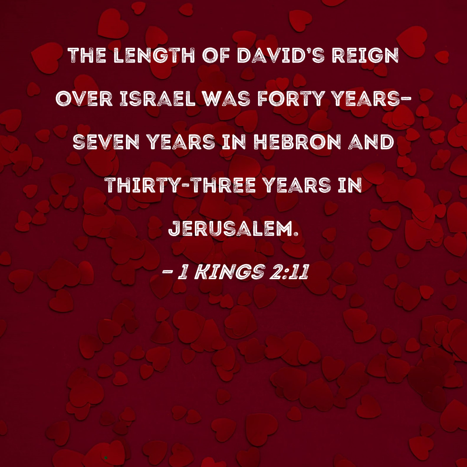 1 Kings 2:11 The length of David's reign over Israel was forty years--seven years in Hebron and thirty-three years in Jerusalem.