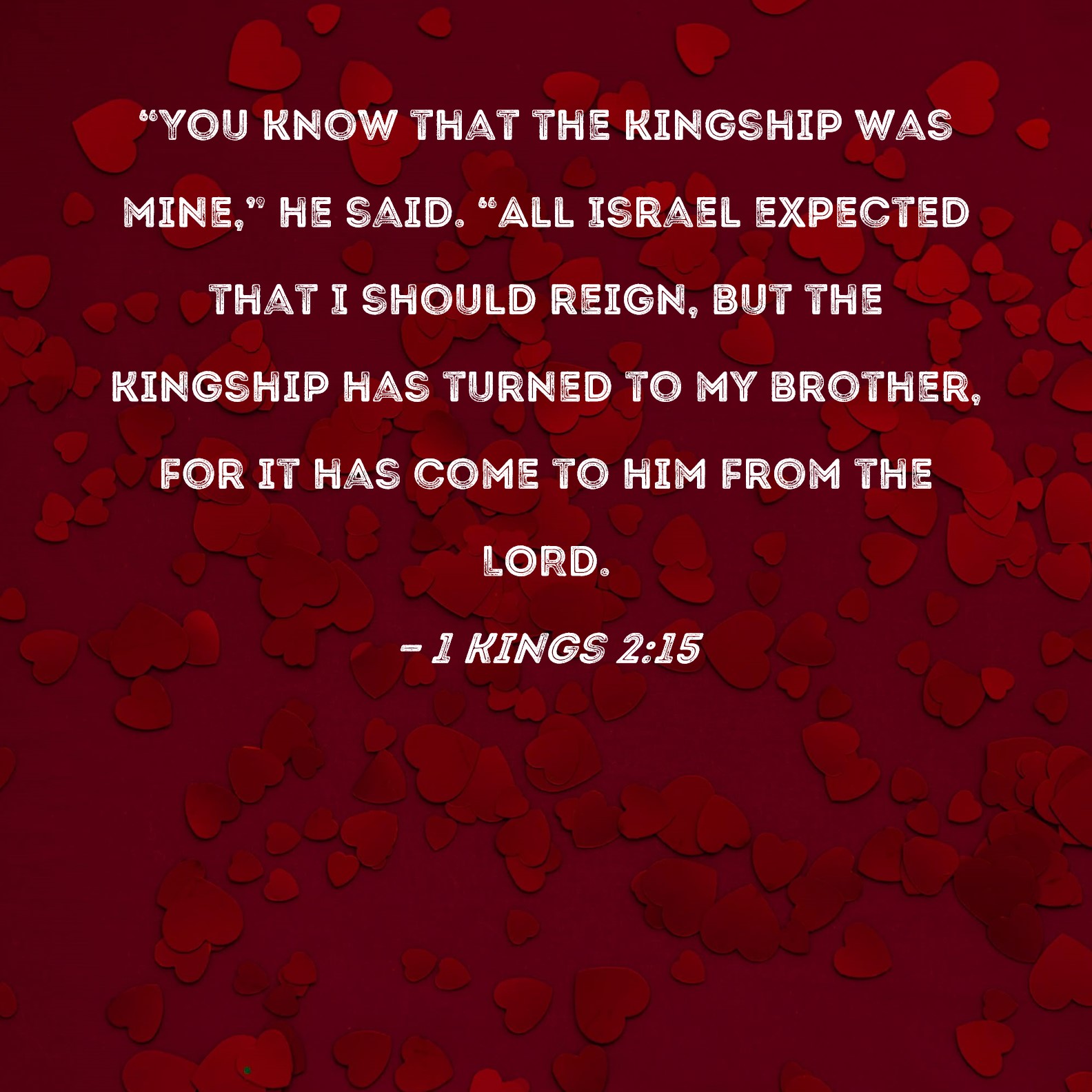 1 Kings 2:15 "You know that the kingship was mine," he said. "All Israel expected that I should reign, but the kingship has turned to my brother, for it has come to him from the LORD.