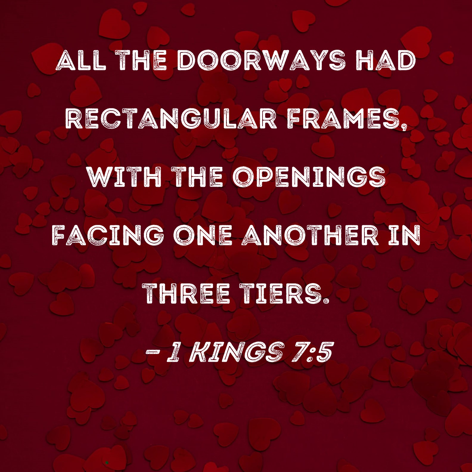 1 Kings 7:5 All the doorways had rectangular frames, with the openings facing one another in three tiers.