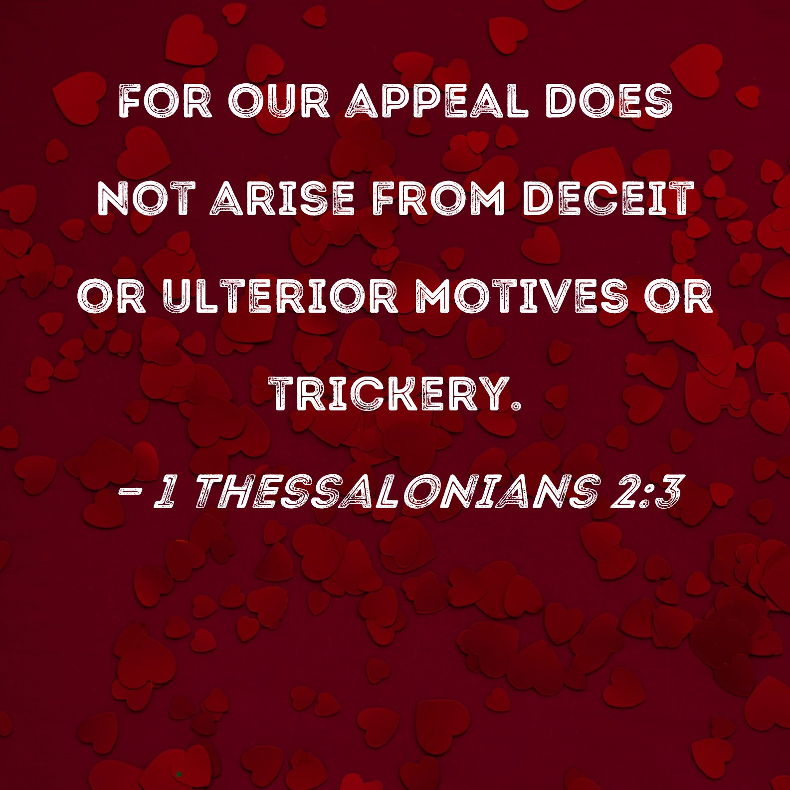 1 Thessalonians 2:3 For our appeal does not arise from deceit or ulterior motives or trickery.