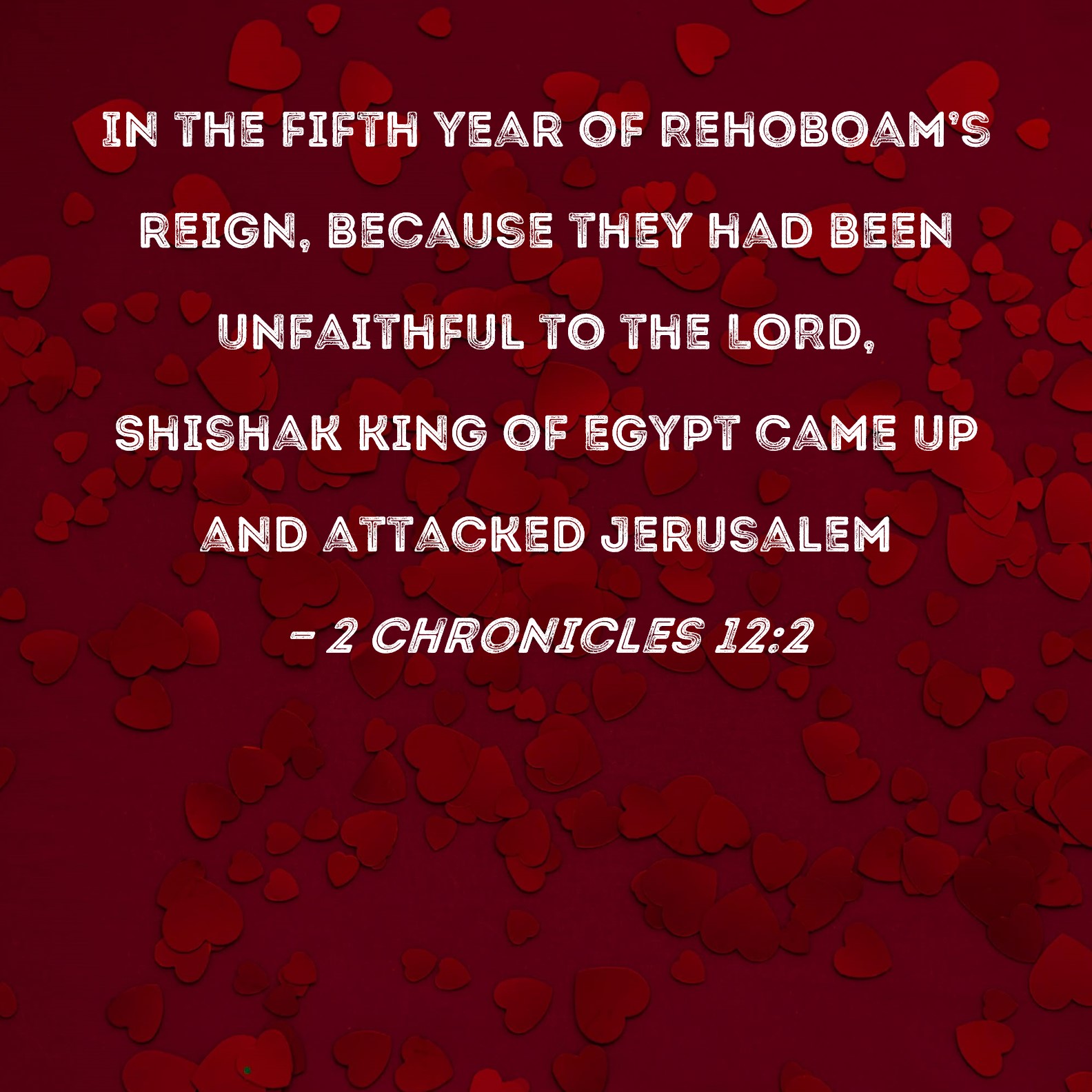 2 Chronicles 12:2 In the fifth year of Rehoboam's reign, because they had been unfaithful to the LORD, Shishak king of Egypt came up and attacked Jerusalem