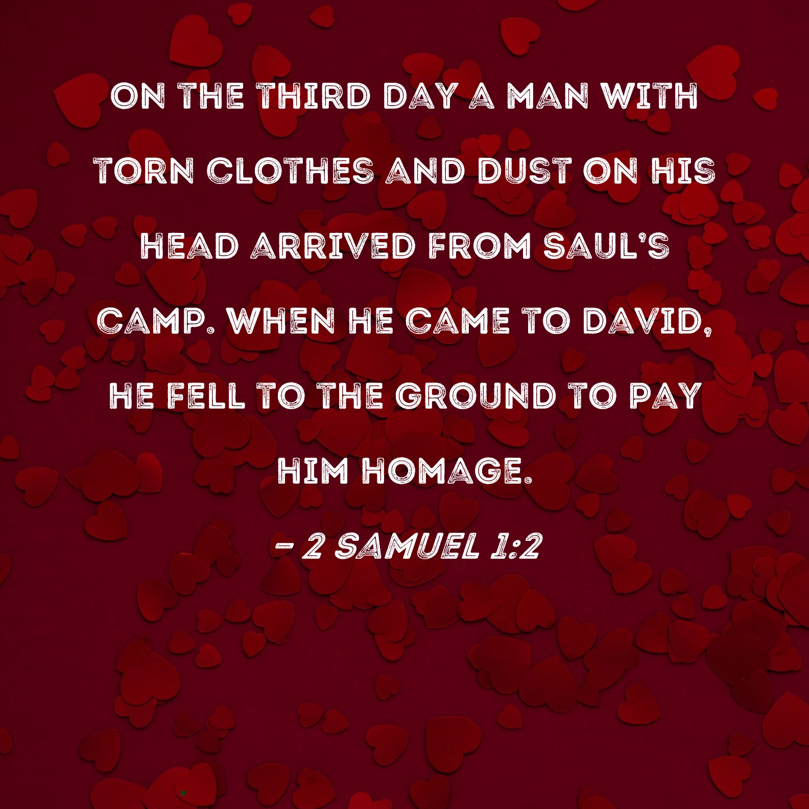 2 Samuel 1:2 On the third day a man with torn clothes and dust on his head arrived from Saul's camp. When he came to David, he fell to the ground to pay him homage.