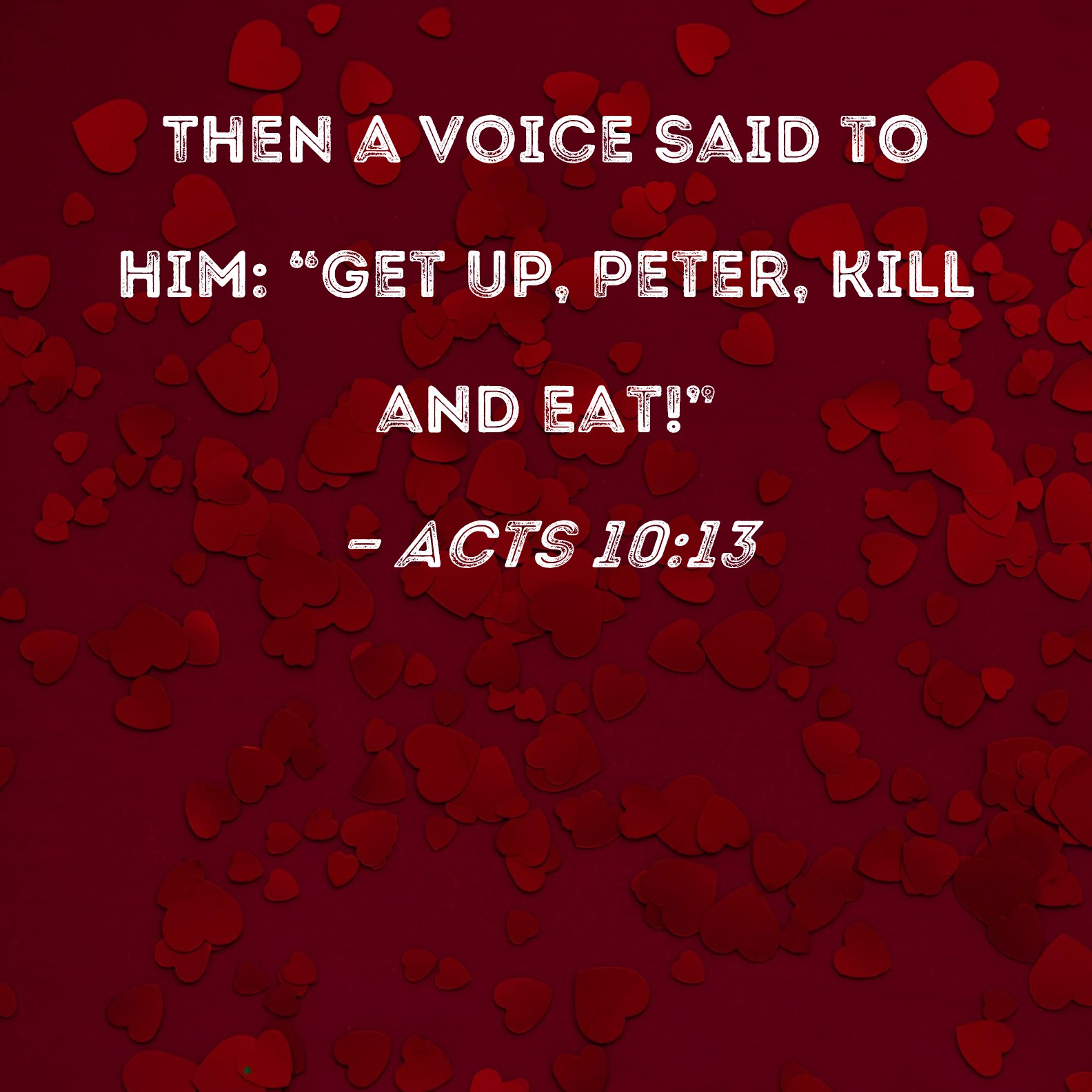 Acts 10:13 Then a voice said to him: "Get up, Peter, kill and eat!"