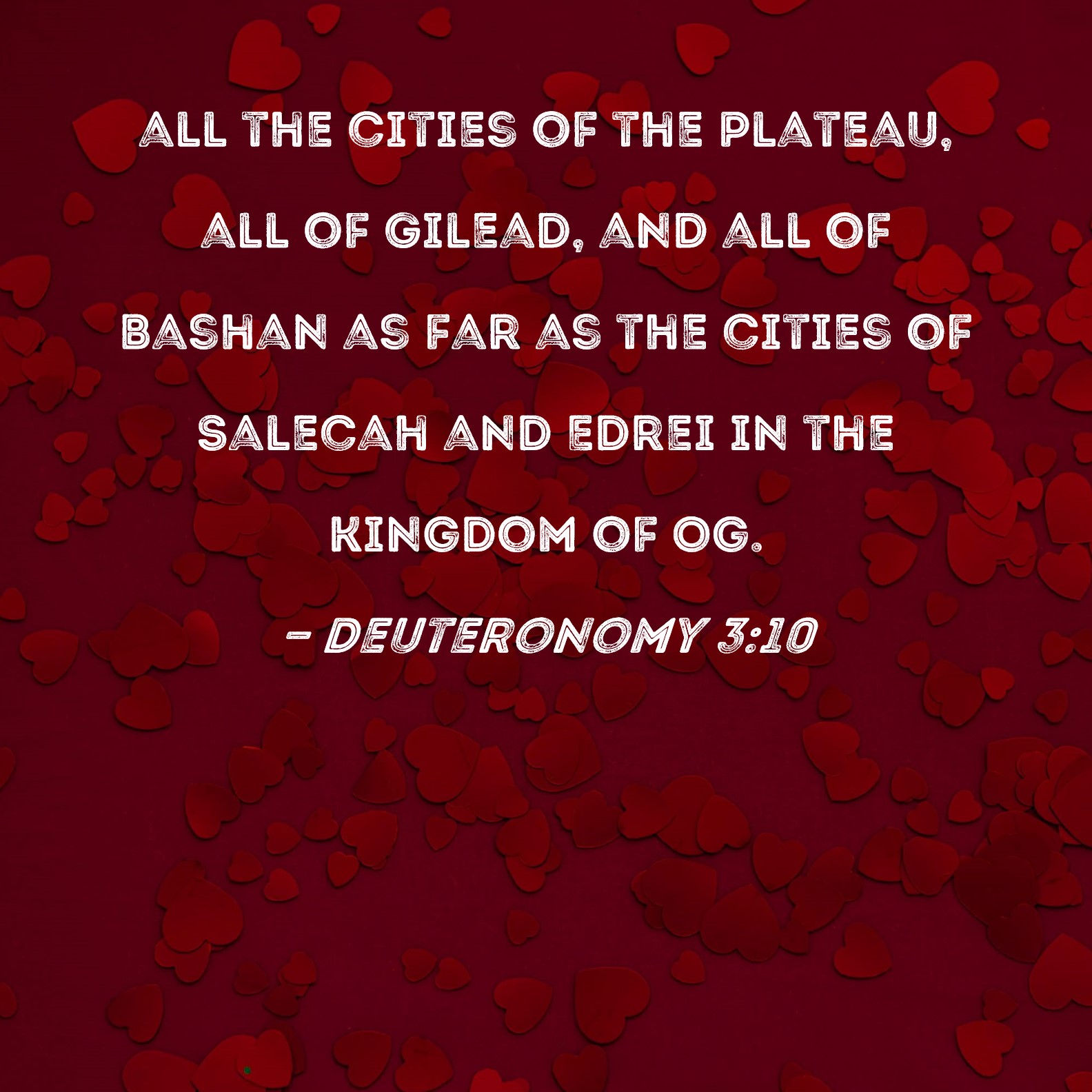 Deuteronomy 3:10 all the cities of the plateau, all of Gilead, and all of Bashan as far as the cities of Salecah and Edrei in the kingdom of Og.