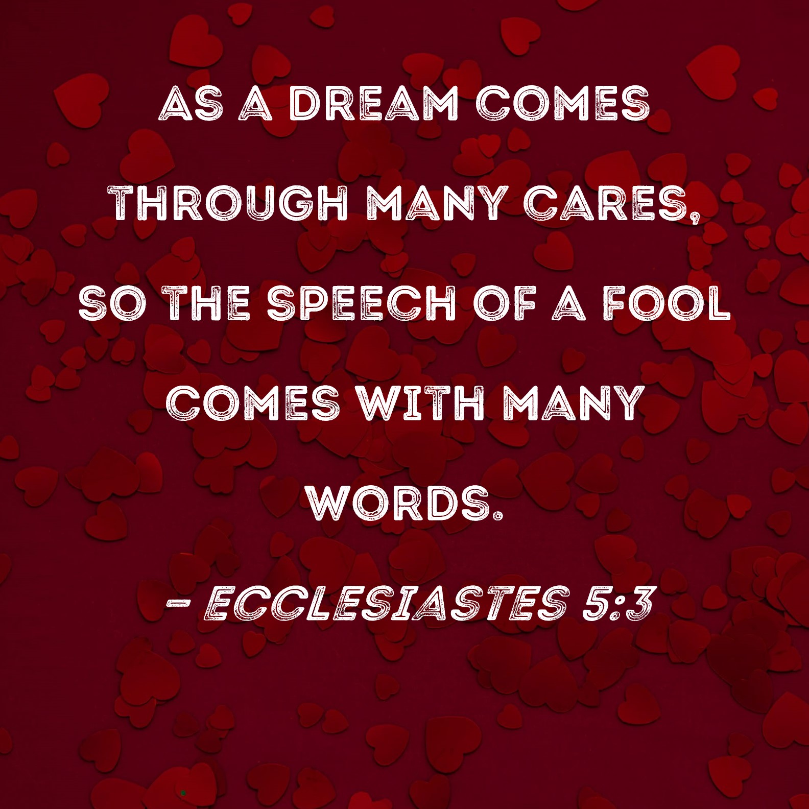 Ecclesiastes 5:3 As a dream comes through many cares, so the speech of a fool comes with many words.
