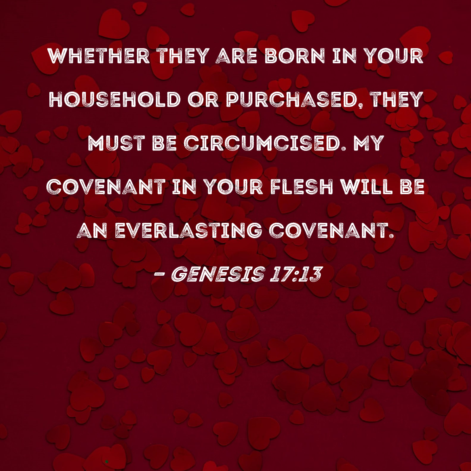 Genesis 17:13 Whether they are born in your household or purchased, they must be circumcised. My covenant in your flesh will be an everlasting covenant.