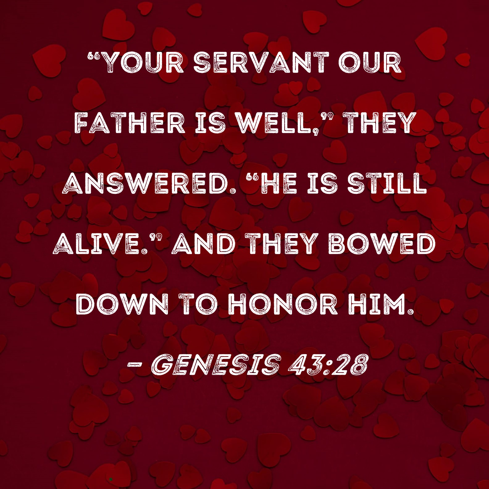 Genesis 43:28 "Your servant our father is well," they answered. "He is still alive." And they bowed down to honor him.