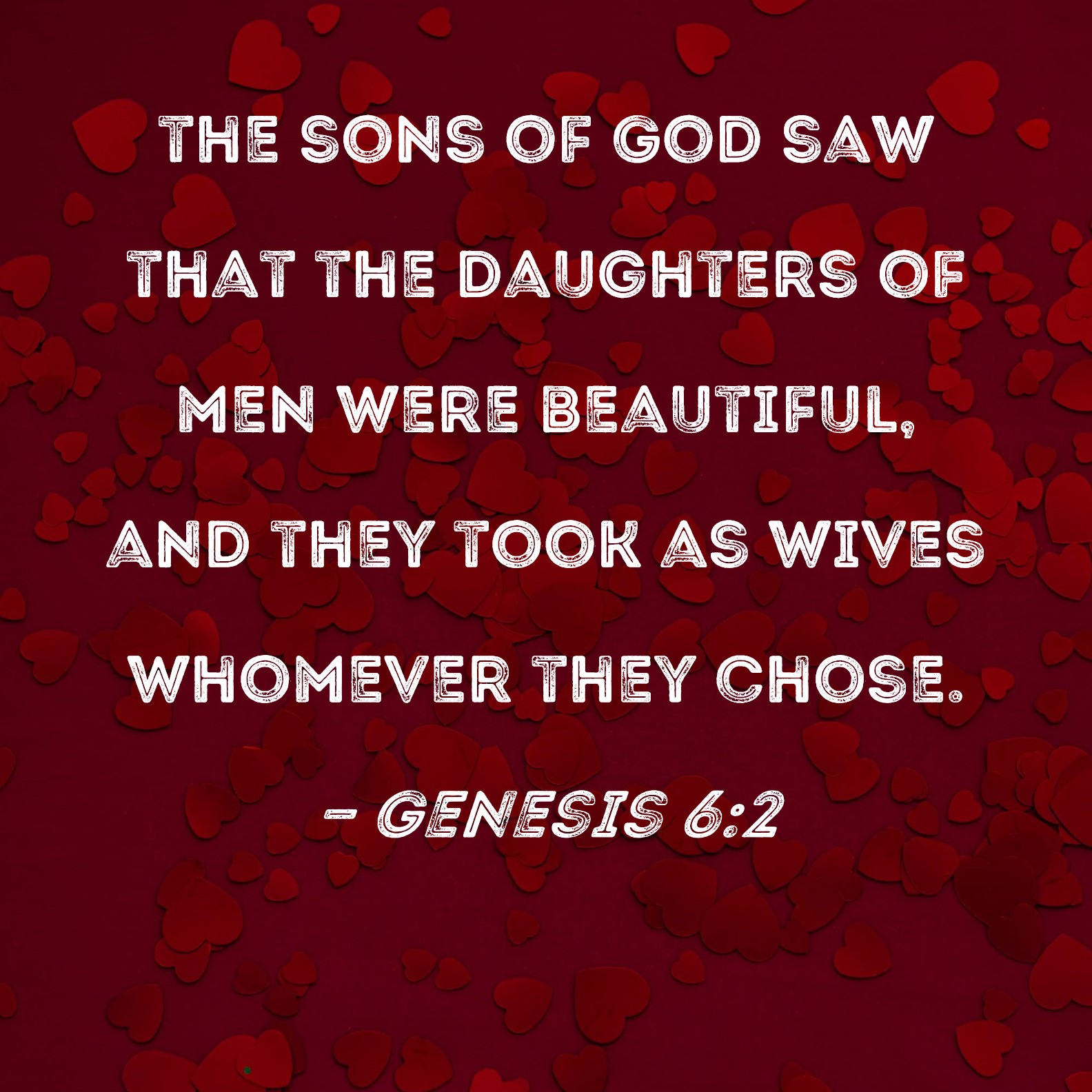 God’s sons saw that men’s daughters were beautiful, and they took any that they wanted for themselves as wives.
