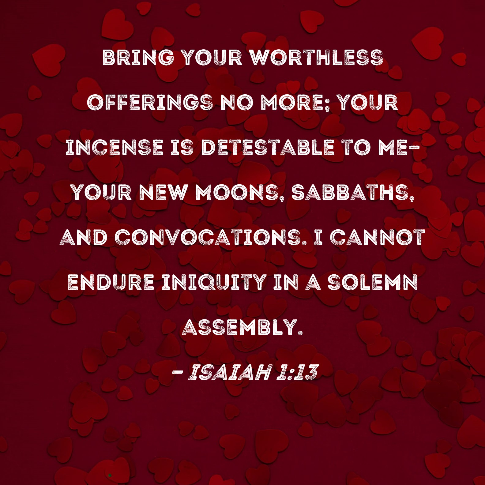Isaiah 1:13 Bring your worthless offerings no more; your incense is detestable to Me--your New Moons, Sabbaths, and convocations. I cannot endure iniquity in a solemn assembly.