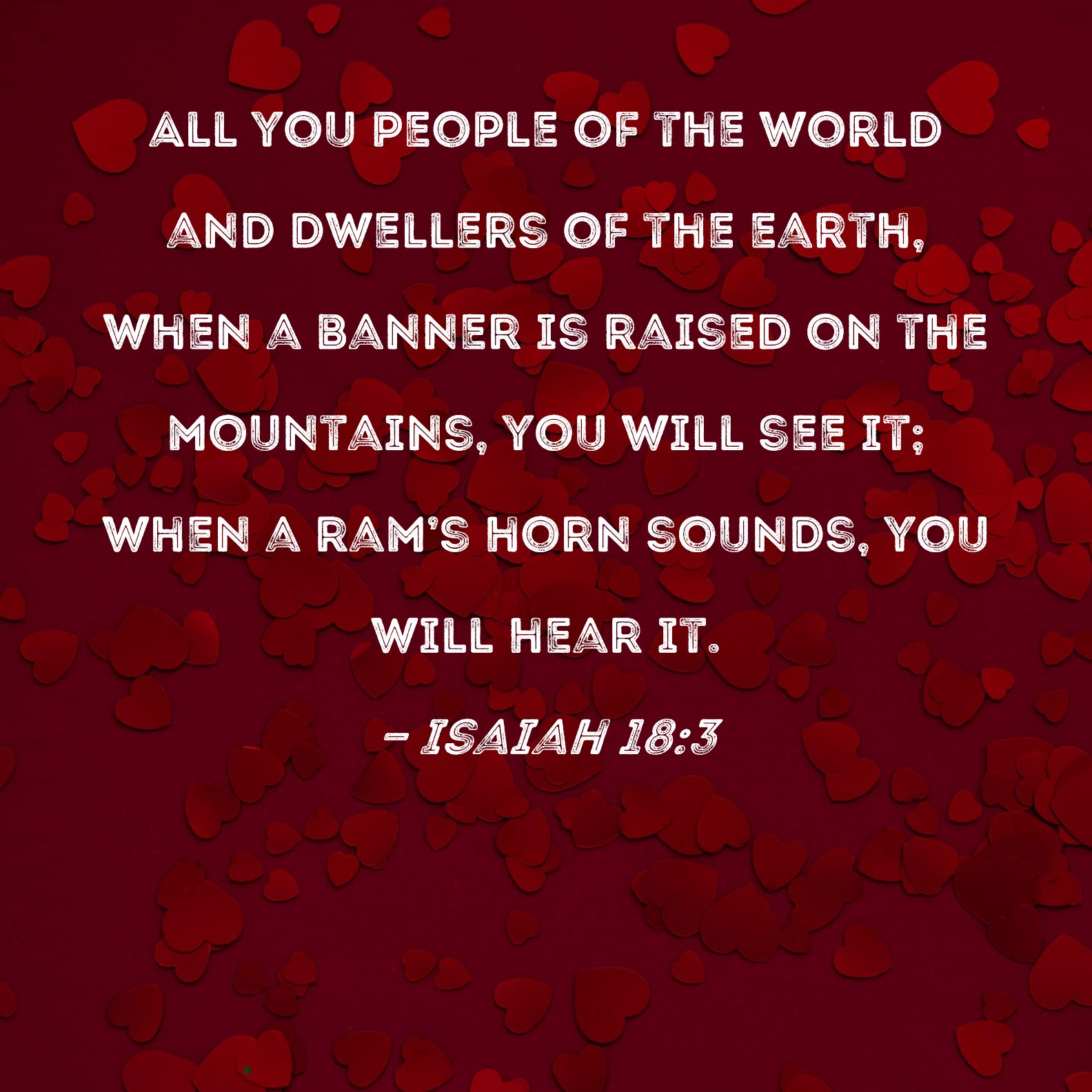 Isaiah 18:3 All you people of the world and dwellers of the earth, when a banner is raised on the mountains, you will see it; when a ram's horn sounds, you will hear it.
