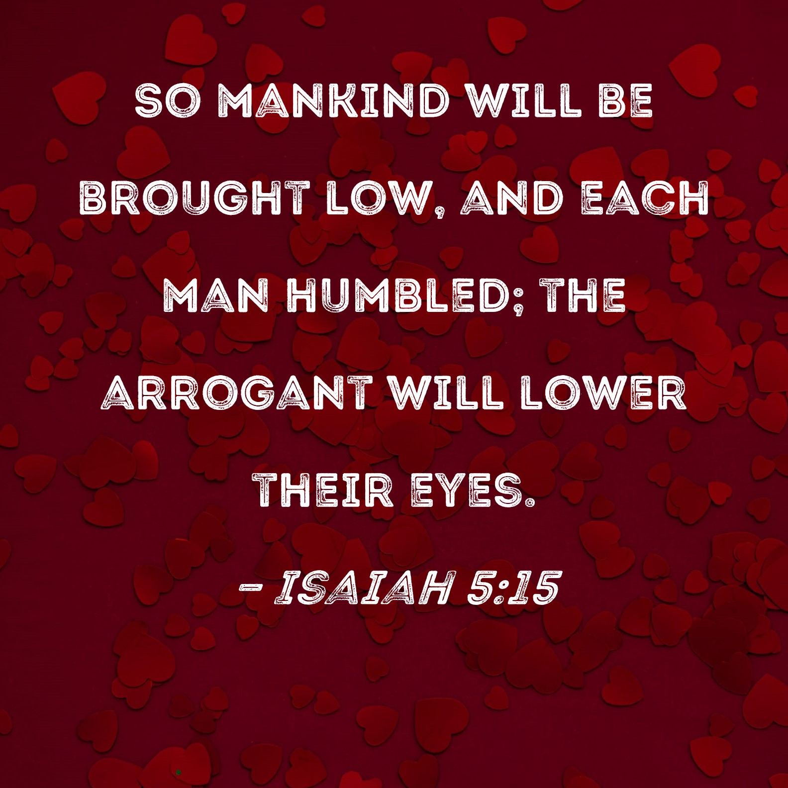 Isaiah 5:15 So mankind will be brought low, and each man humbled; the arrogant will lower their eyes.
