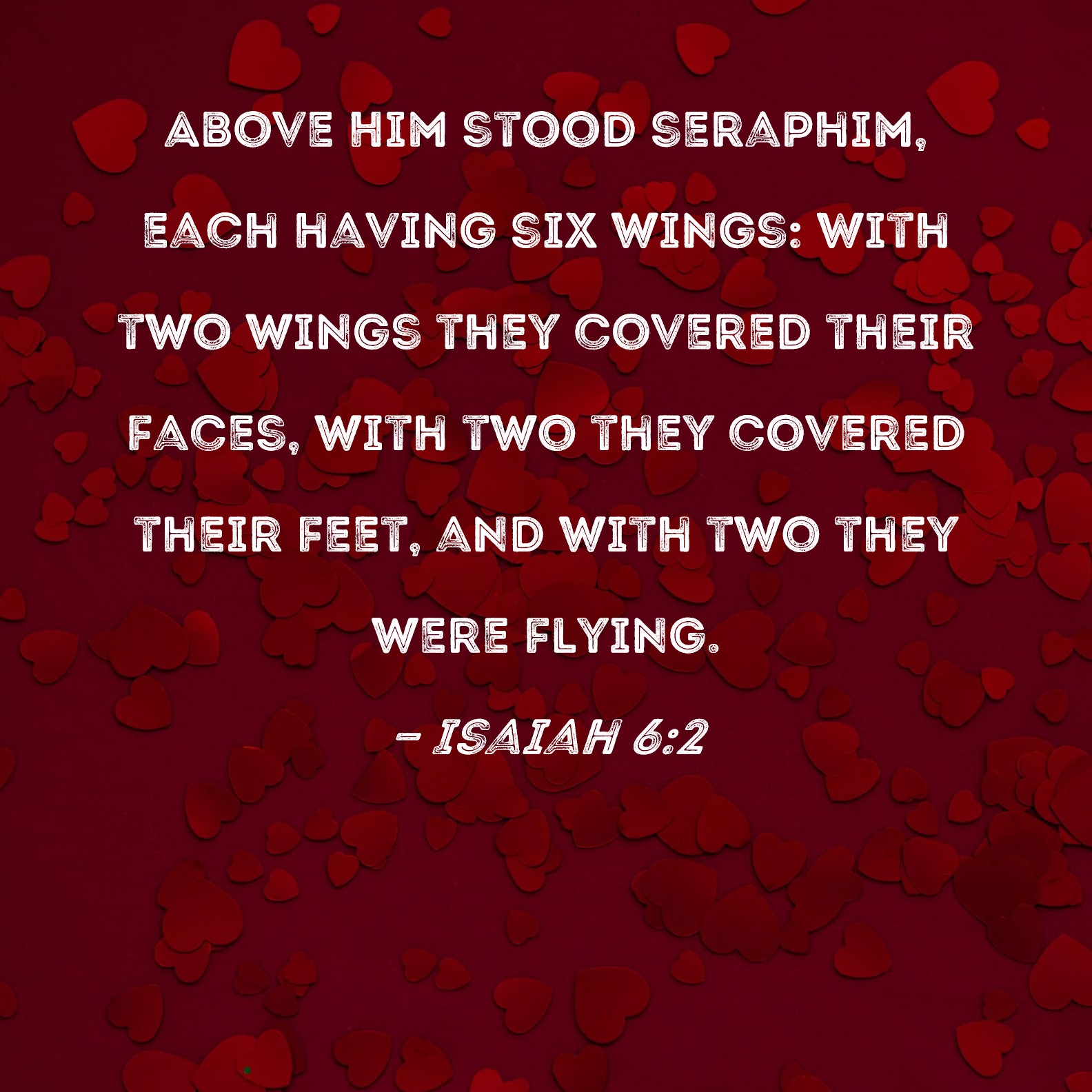 WEB:  Above him stood the seraphim. Each one had six wings. With two he covered his face. With two he covered his feet. With two he flew.