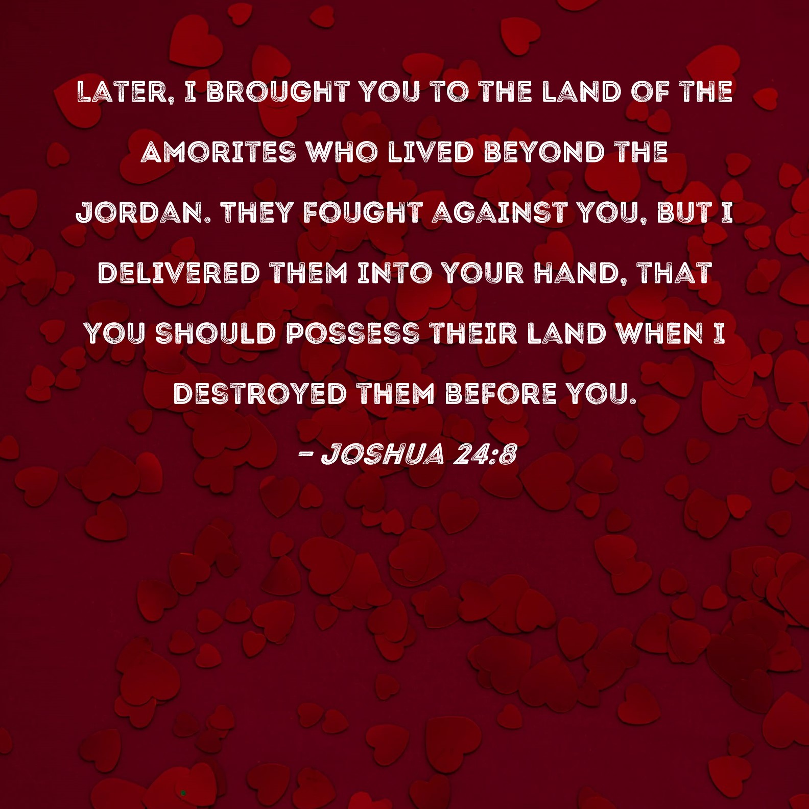 Joshua 24:8 Later, I brought you to the land of the Amorites who lived beyond the Jordan. They fought against you, but I delivered them into your hand, that you should possess their land when I destroyed them before you.