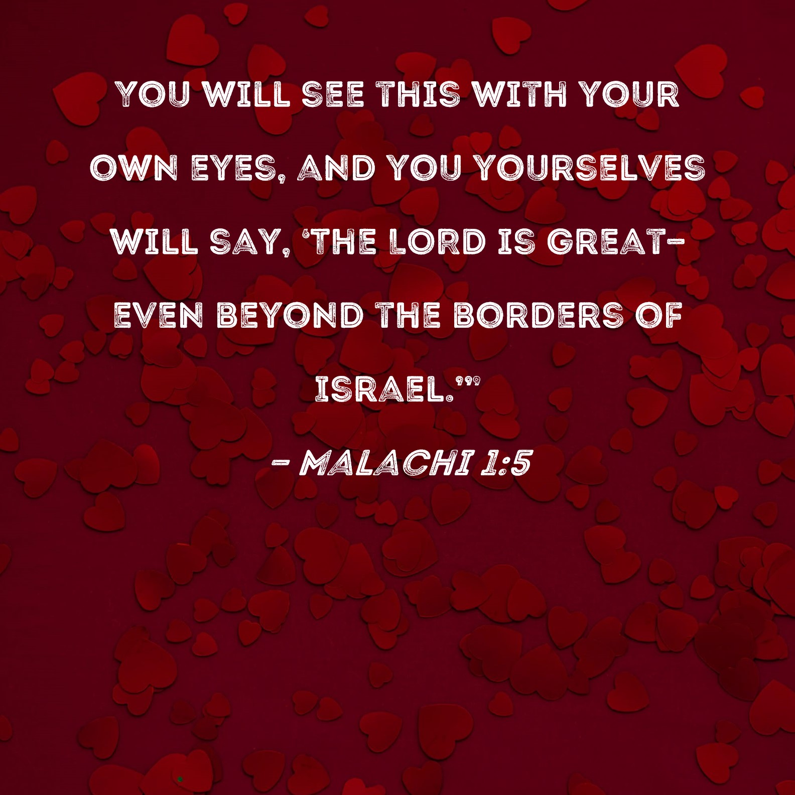 Malachi 1:5 You will see this with your own eyes, and you yourselves will say, 'The LORD is great--even beyond the borders of Israel.'"