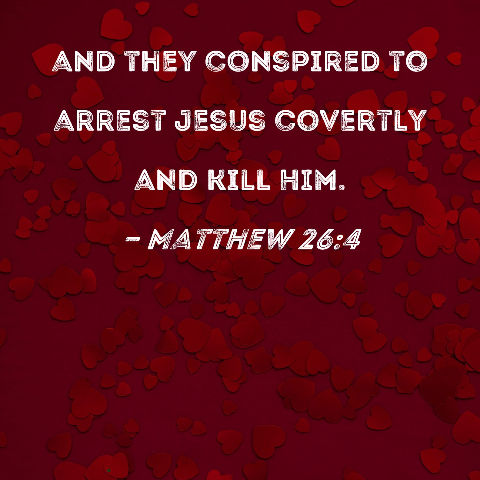 Matthew 26:4 and they conspired to arrest Jesus covertly and kill Him.