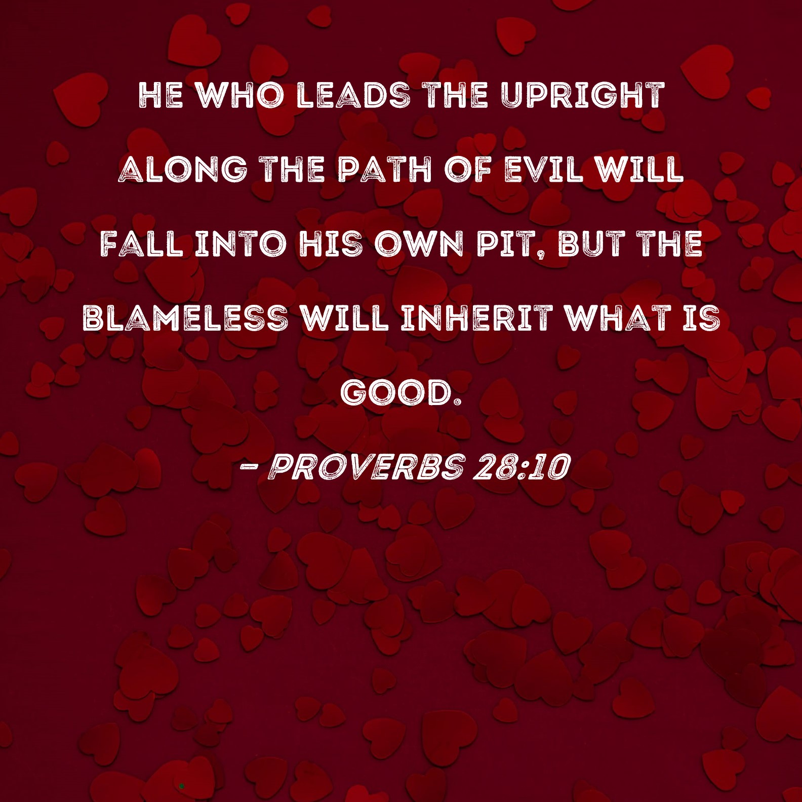 Proverbs 28:10 He who leads the upright along the path of evil will fall into his own pit, but the blameless will inherit what is good.