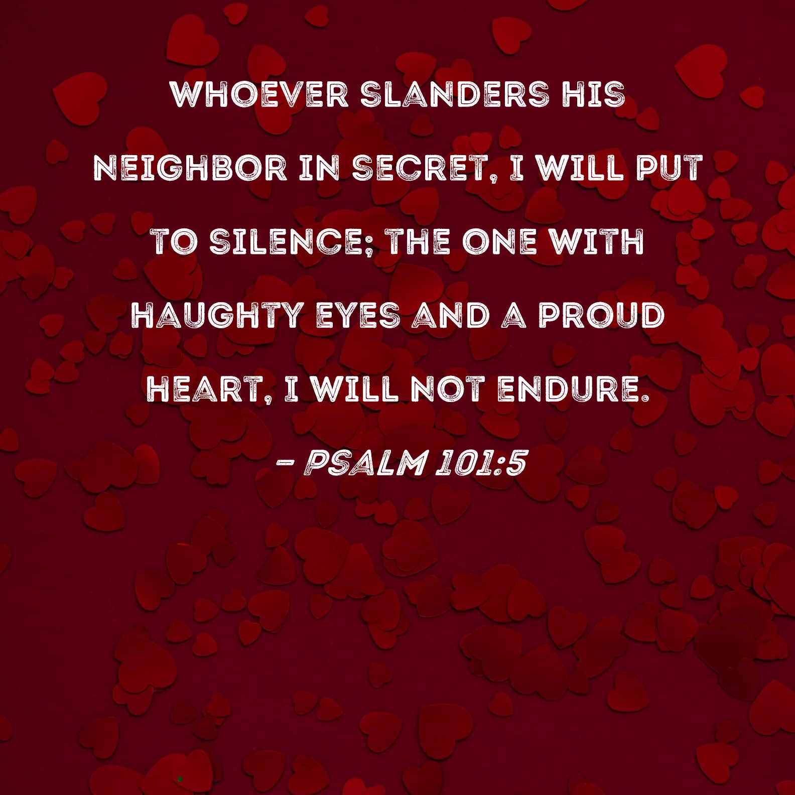 Psalm 101:5 Whoever slanders his neighbor in secret, I will put to silence; the one with haughty eyes and a proud heart, I will not endure.