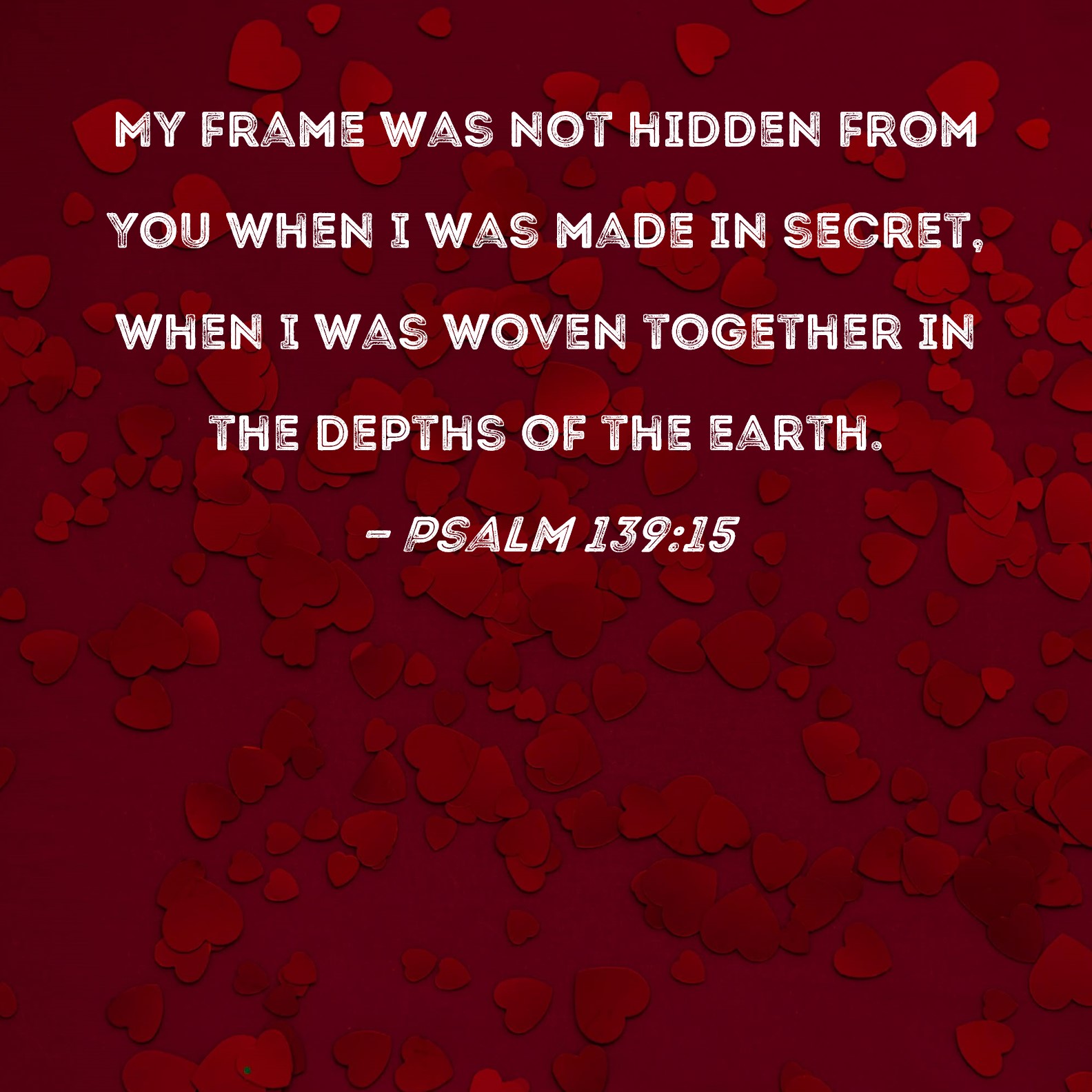 Psalm 139:15 My frame was not hidden from You when I was made in secret, when I was woven together in the depths of the earth.