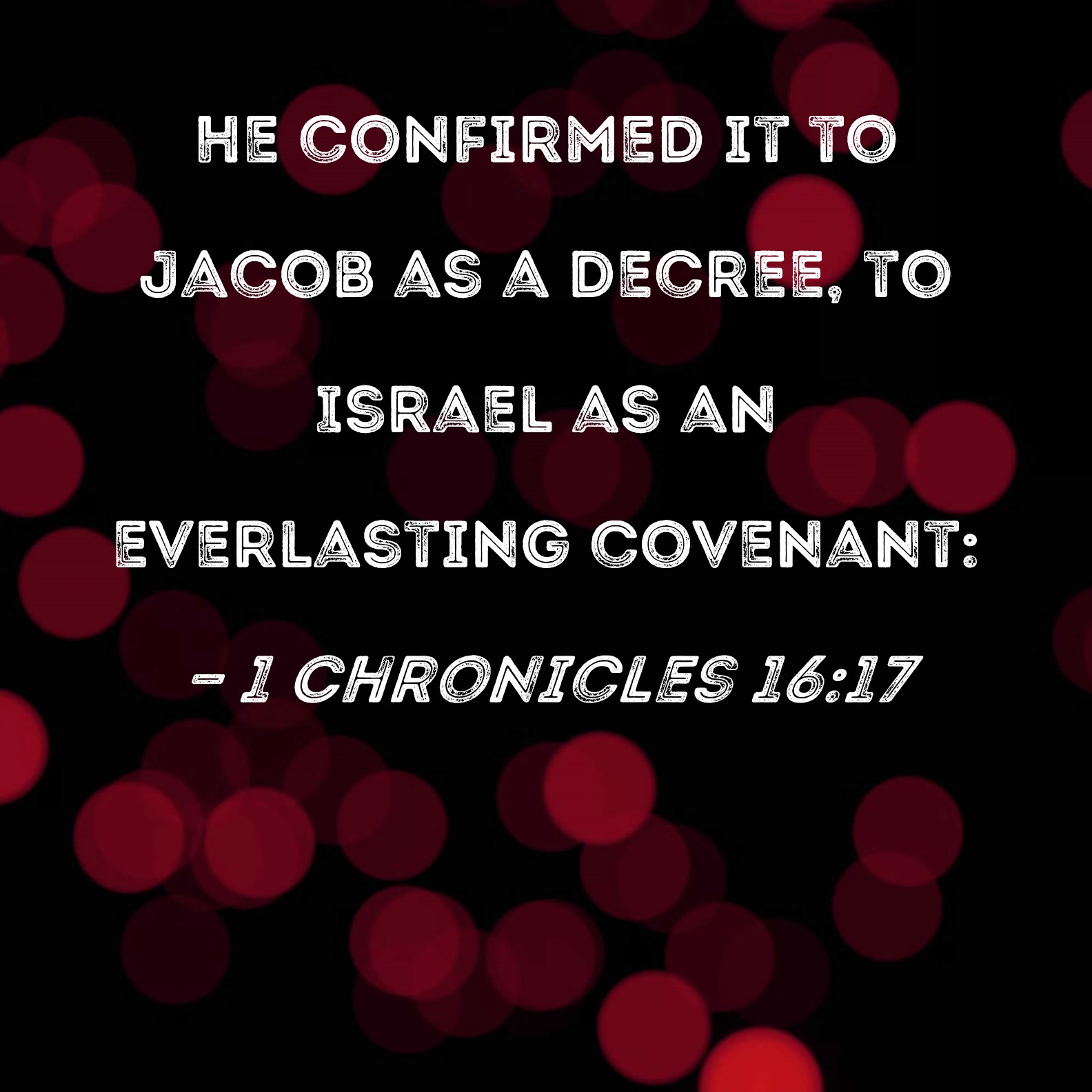 1 Chronicles 16:17 He confirmed it to Jacob as a decree, to Israel as an everlasting covenant: