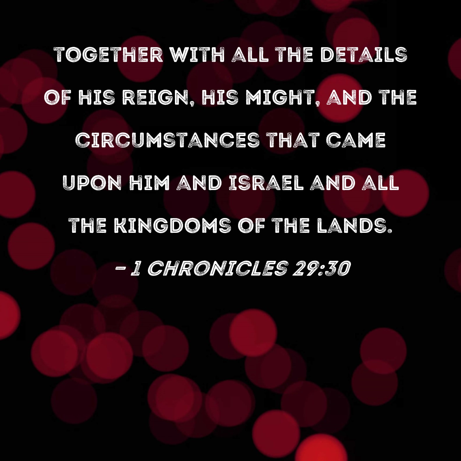 1 Chronicles 29:30 together with all the details of his reign, his might, and the circumstances that came upon him and Israel and all the kingdoms of the lands.