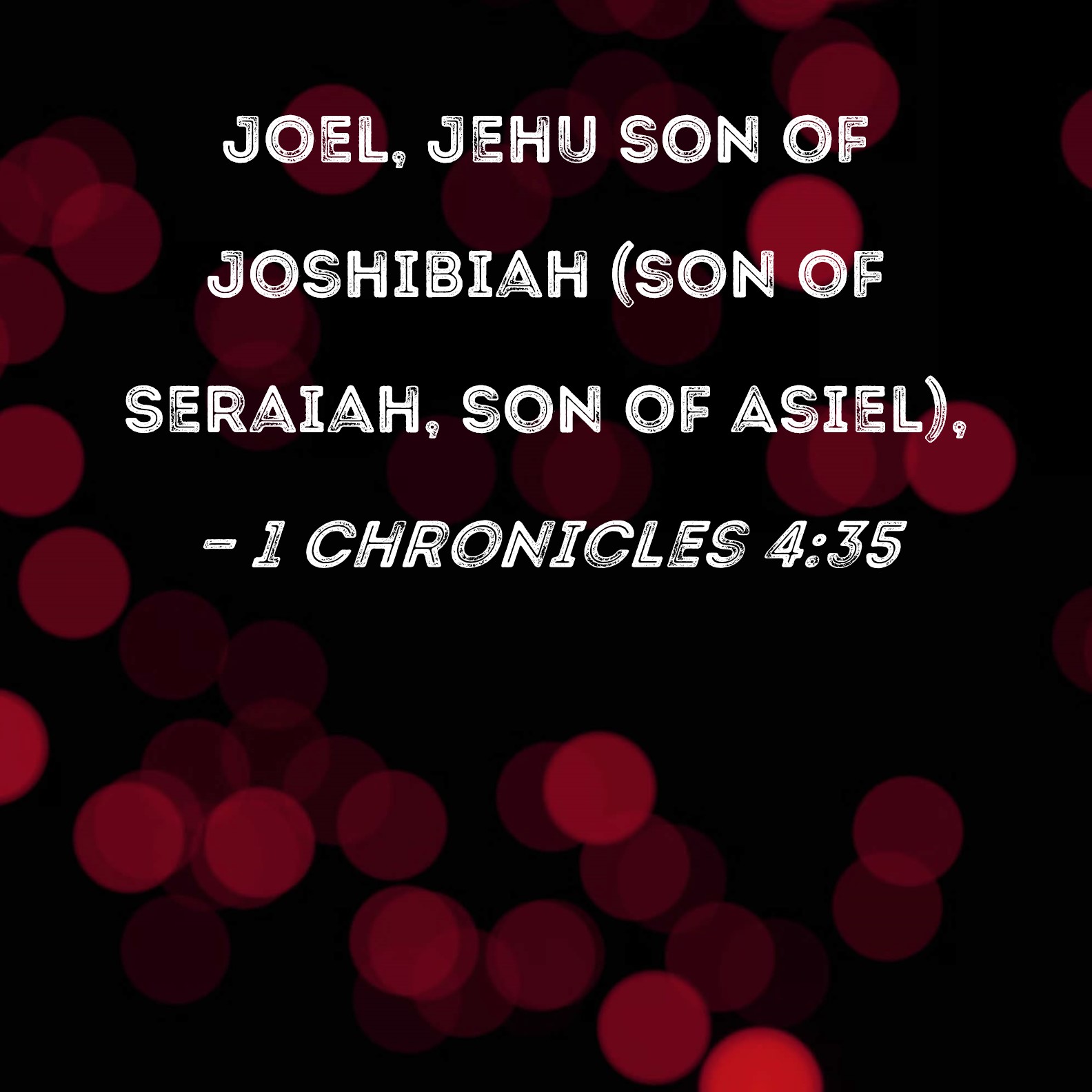 1 Chronicles 4:35 Joel, Jehu son of Joshibiah (son of Seraiah, son of Asiel),