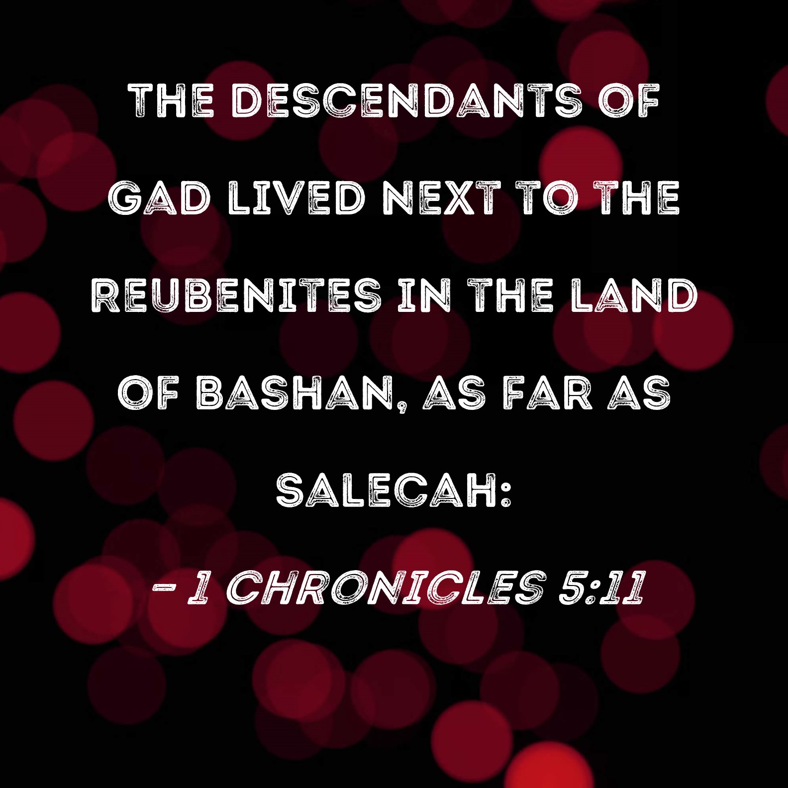 1 Chronicles 5:11 The descendants of Gad lived next to the Reubenites in the land of Bashan, as far as Salecah: