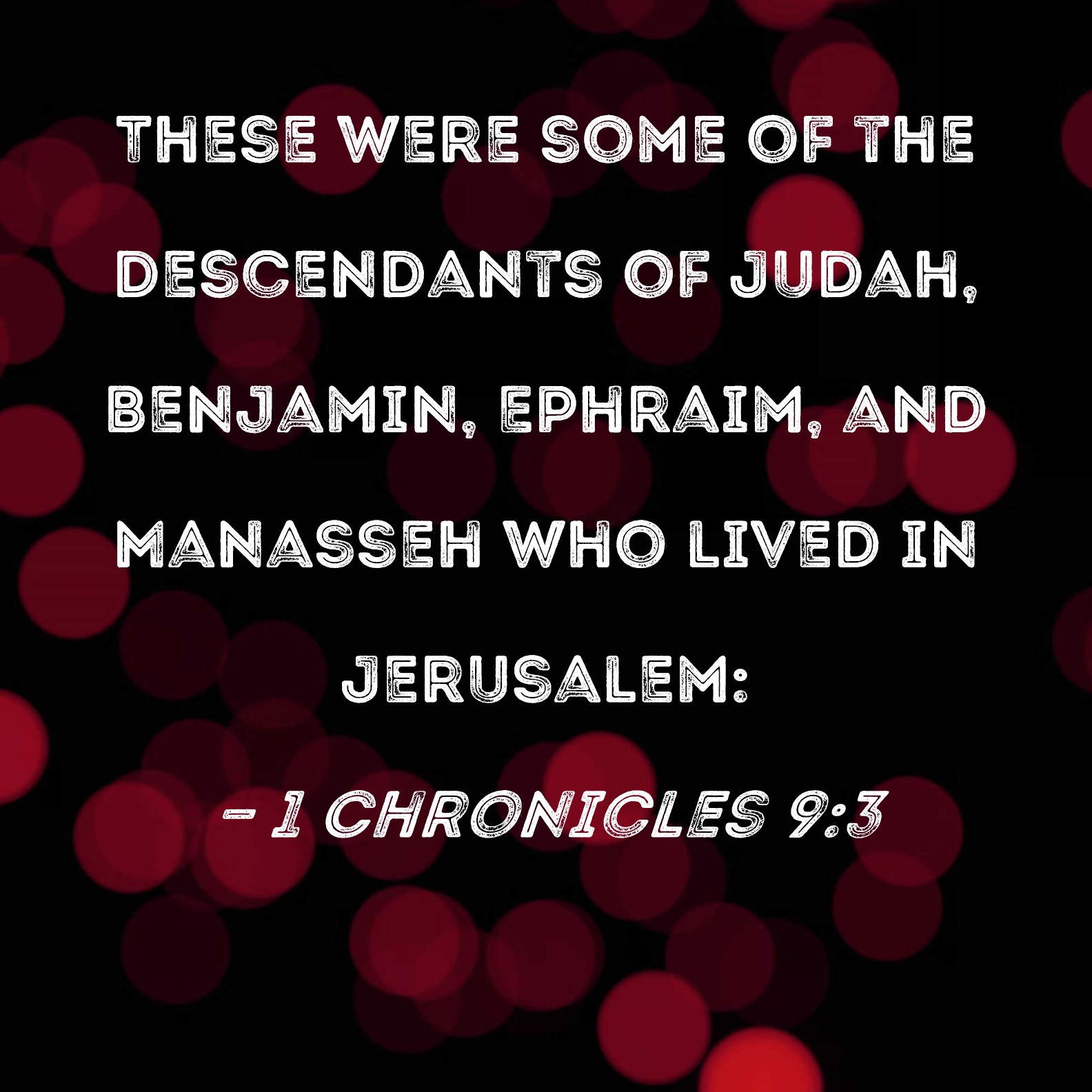 1 Chronicles 9:3 These were some of the descendants of Judah, Benjamin, Ephraim, and Manasseh who lived in Jerusalem:
