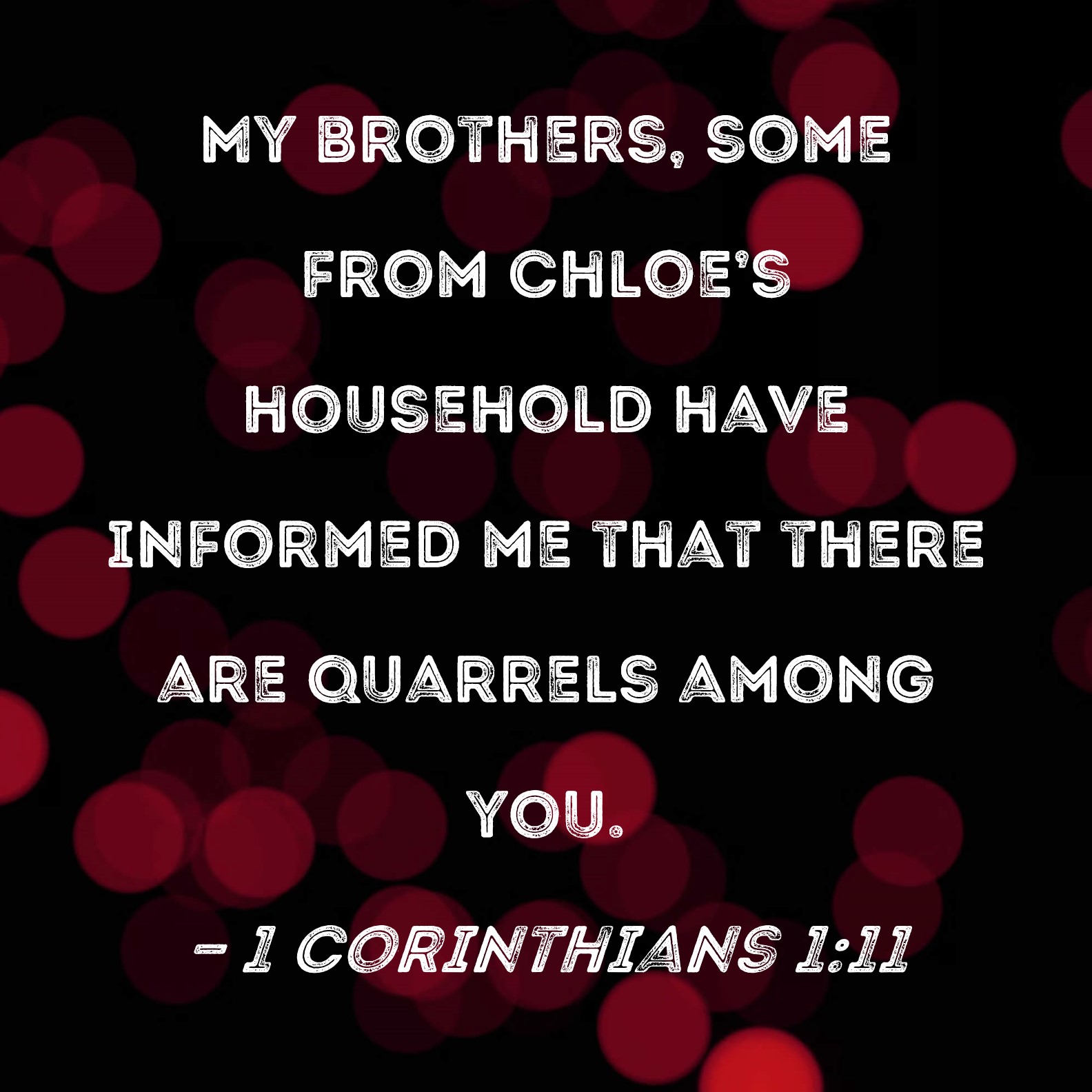 1 Corinthians 1:11 My brothers, some from Chloe's household have informed me that there are quarrels among you.