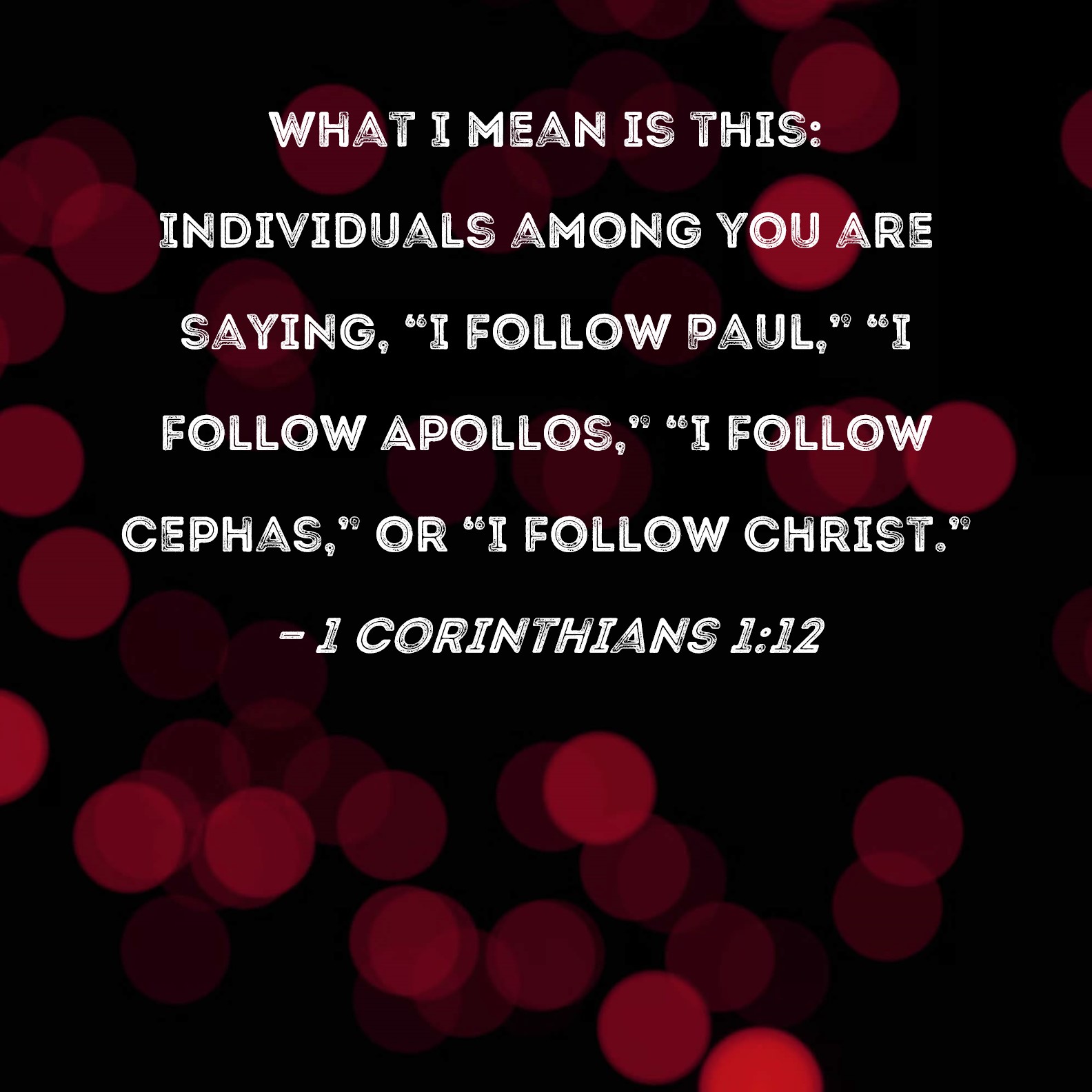 1 Corinthians 1:12 What I mean is this: Individuals among you are saying, "I follow Paul," "I follow Apollos," "I follow Cephas," or "I follow Christ."