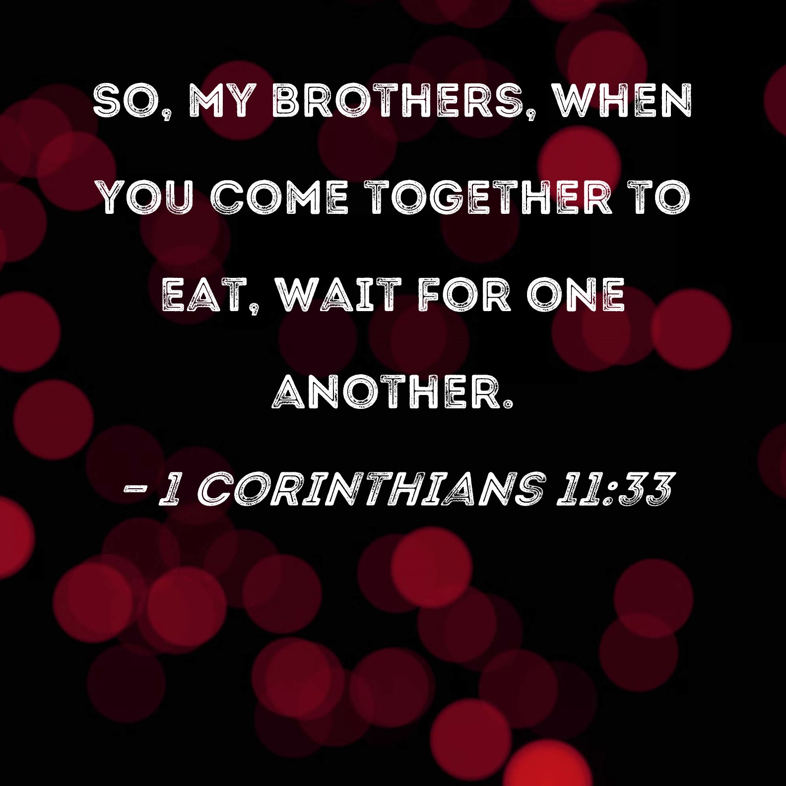 1 Corinthians 11:33 So, my brothers, when you come together to eat, wait for one another.
